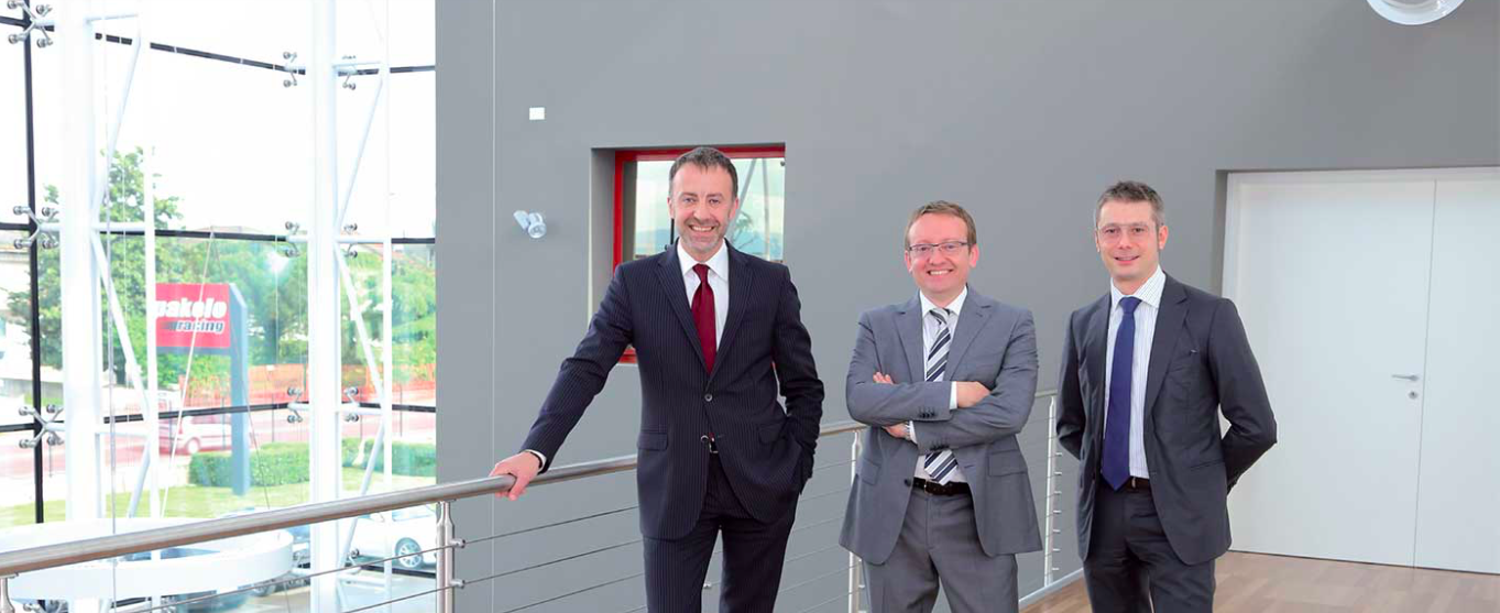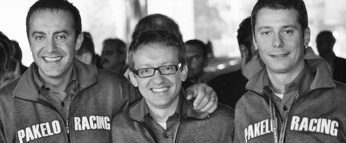 Aldo, Rino y Alberto en la planta Maserati durante un evento en 2005.